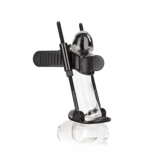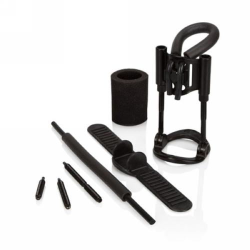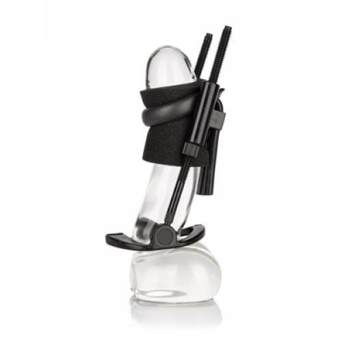 The perfect fit is all yours with this stretchy and comfortable delight. This pro-grade extension system relies on gentle tension to increase the length and girth of the penis. Place the plastic base around the shaft and above the scrotum. Slide the headpiece over the extension rods, then loop the silicone hose over the head of the penis, tightening securely before pushing the remaining ends through the slots in the housing. Adjust the tension by turning the bolts to stretch the head from the base, and stop after reaching an optimal level of tension. Wear the Extender for no longer than 30 minutes.