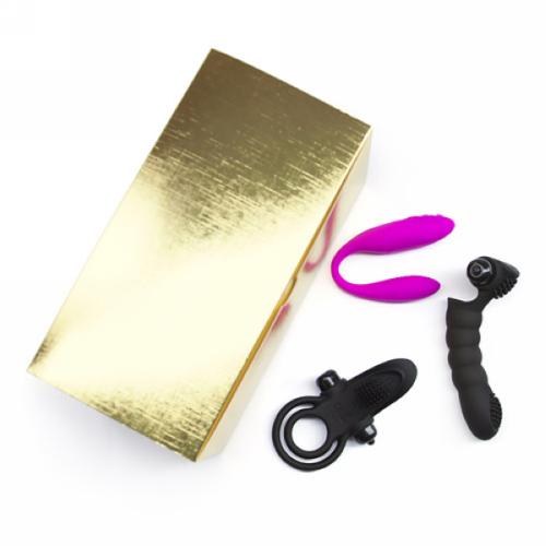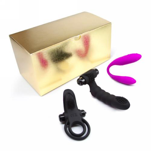 Give orgasms with this gold box full of sexy experiences for him and her. Each toy delivers sensual stimulation leading to powerful release for both partners. Give her a G-spot orgasms while using finger vibrator for reaching deep into her. The vibrating love ring will allow for giving her intense vibrations while keeping him strong for ultimate orgasmic crescendo. The C-shape vibrator offers in and out stimulation for him and her during sex resulting in powerful dual orgasms.