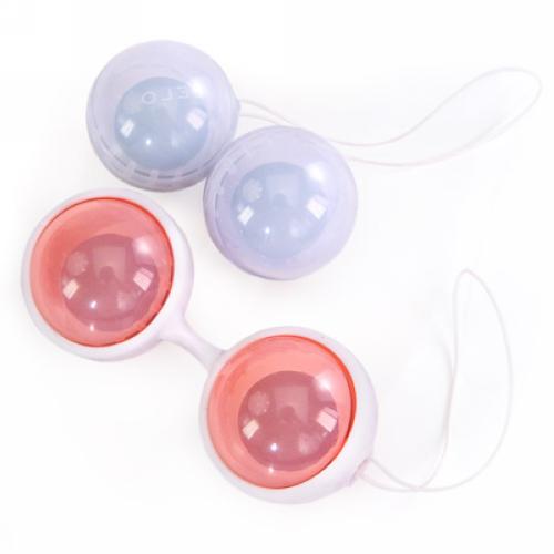 Two pairs of variably weighted balls and silicone cradle for pelvic exercise