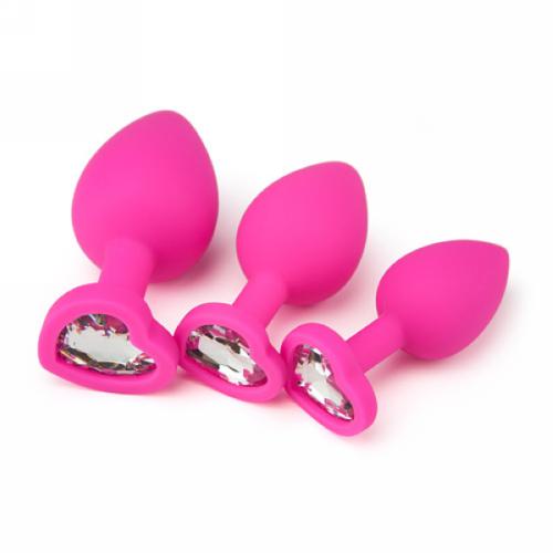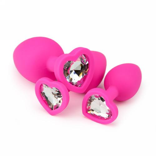 Give your booty the love it deserves with this jeweled heart-shaped silicone butt plug set, featuring plugs gradually increasing in size for the safe orgasmic enjoyment and stretching.