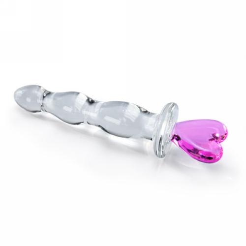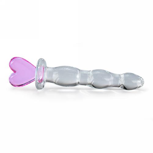 Women/Men Pink Heart Glass Dildo-Glass Probe Clear/Pink | EdenFantasys Glass Dildos